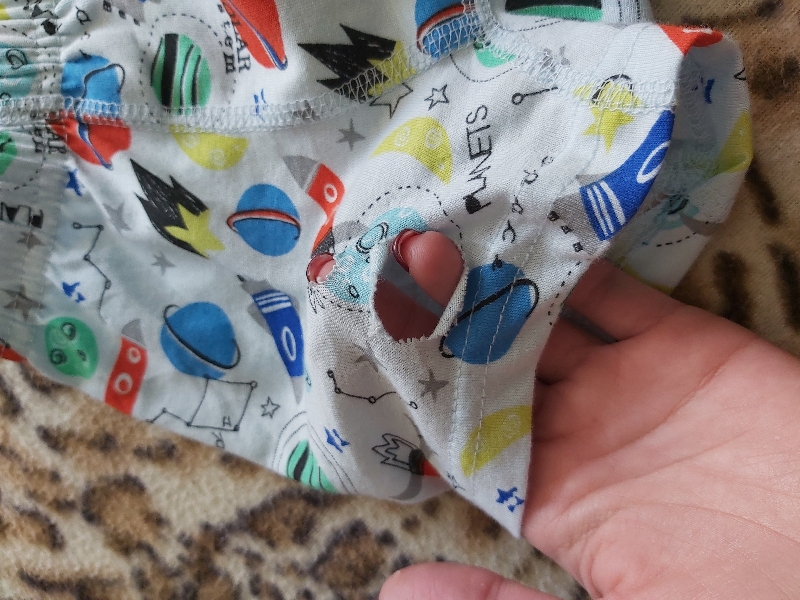 Трусы с приятной скидкой, но пришли в непотребном виде. С огромной дырой,  даже если зашить ребенок все равно, как оборванец, неприятно(