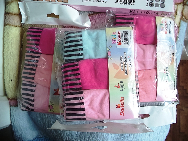Модельки выполнены из однотонного хлопкового трикотажа нежной расцветки. В поясе широкая эластичная резинка в полоску. Сбоку небольшой принт с надписью