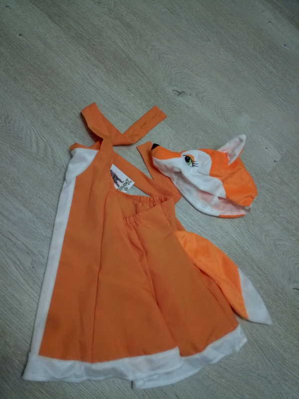 В комплекте сарафан и шапочка с хлопковым подкладом. Нарядный новогодний костюм точно привлечет всеобщее внимание, а маленькая лисичка подарит только позитивные эмоции.
