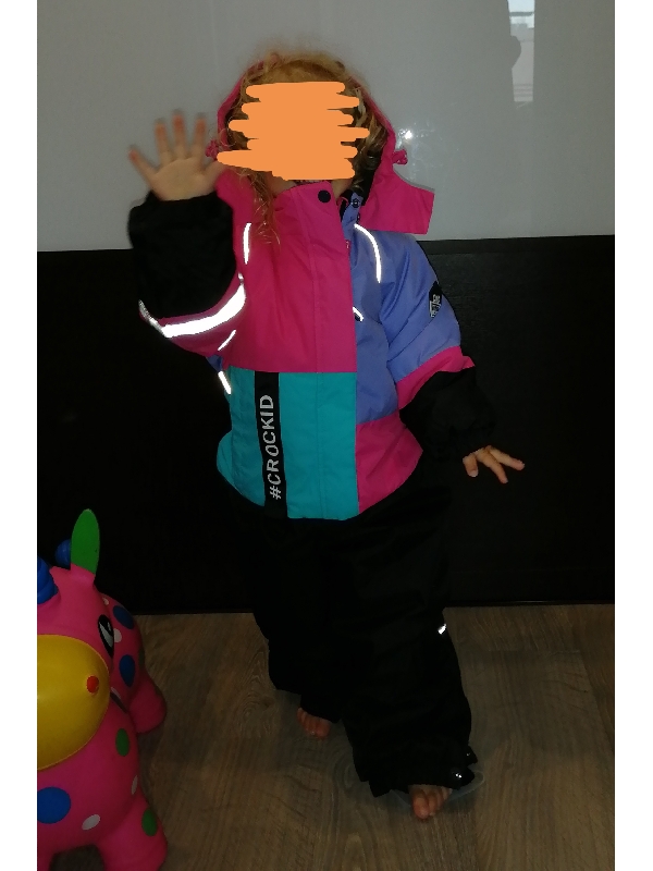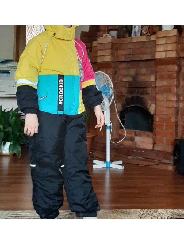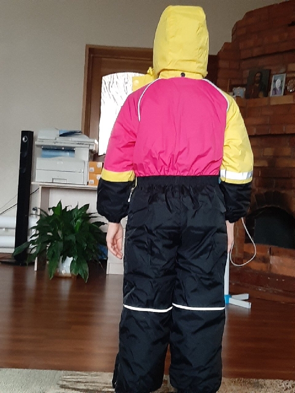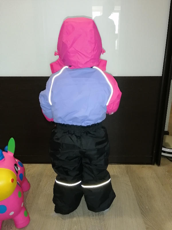 На спинке в области талии утяжка на эластичную плоскую резинку, эластичные манжеты на рукавах и концах брючин, которые регулируются застежкой на кнопки.