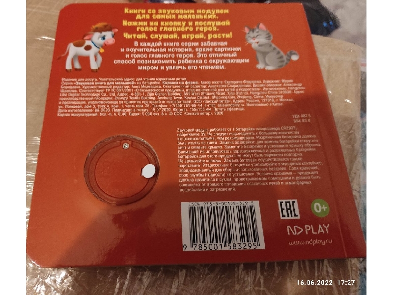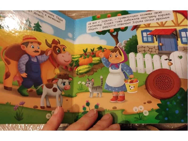 Из минуса - нажав на кнопку только мычит. Хоть бы песенку какую-нибудь записали.  Пока годовасик наслаждается нажатиеи кнопки и мычанием коровы, которое издаёт реалистично. )))