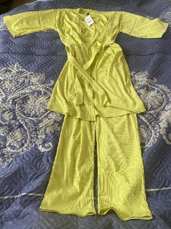 Очень приятный лёгкий костюм. Я переоценила свои формы и заказала на размен меньше, чем надо,но влезла, только накидку не могу на пояс завязать. В целом довольна. Купила ещё футболку в тон, идеально 👍