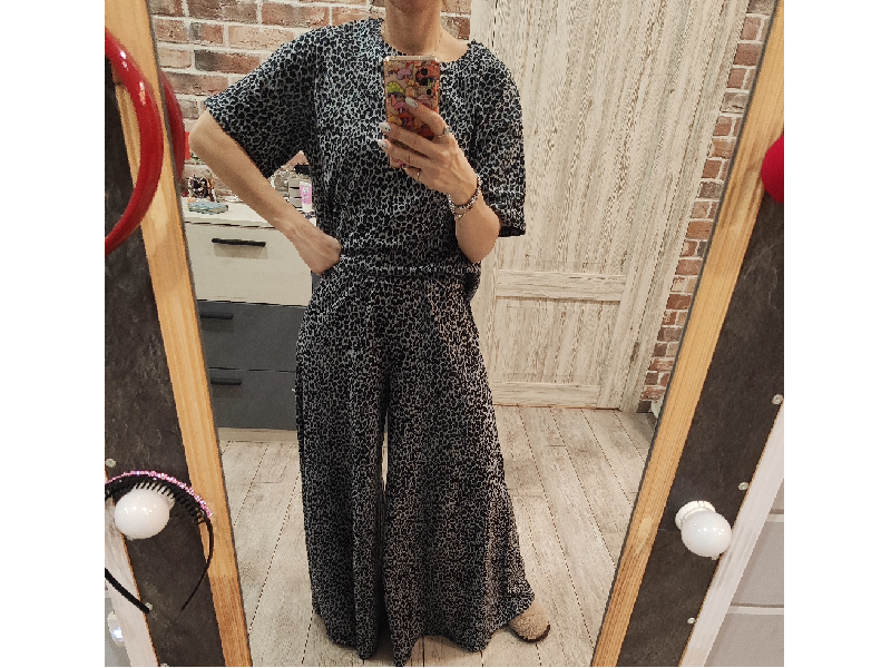 Леопардовый костюм будет по душе тем, кто любит яркие и удобные вещи. Он идеально подходит как для пляжного отдыха, так и для непринужденных встреч с друзьями или для прогулок по городу. Трикотажный костюм станет фаворитом ваших образов, сочетающих стиль, комфорт и практичность для каждого дня.