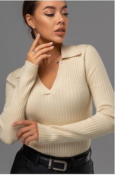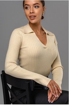 Женский джемпер с V-образным вырезом – универсальный выбор на осень и весну. Базовый вязаный джемпер в рубчик станет незаменимой частью гардероба в демисезонный период. Однотонный пуловер с отложным воротником поможет создать стильные образы для работы в офисе и повседневных прогулок.