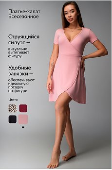 Ощутите нежность и комфорт в бордовом платье-халате! Женское домашнее платье выполнено из мягкой и приятной к телу вискозы с лайкрой. Крой на запах и аккуратная длина мини делают эту модель максимально удобной для женщин.