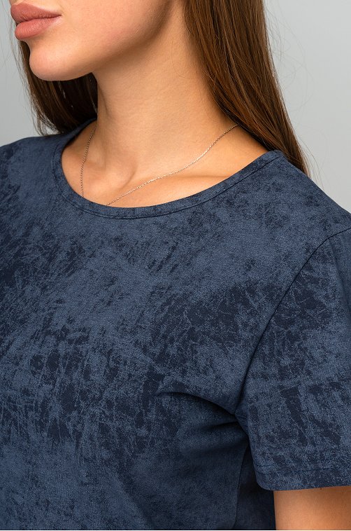 Повседневное домашнее платье выполнено из нежного, приятного к телу 100% хлопка. Трикотажная ткань кулирная гладь хорошо пропускает воздух. Хлопковый трикотаж мягкий и приятный к телу. Короткая туника с винтажным вареным эффектом идеальна для образов на лето.